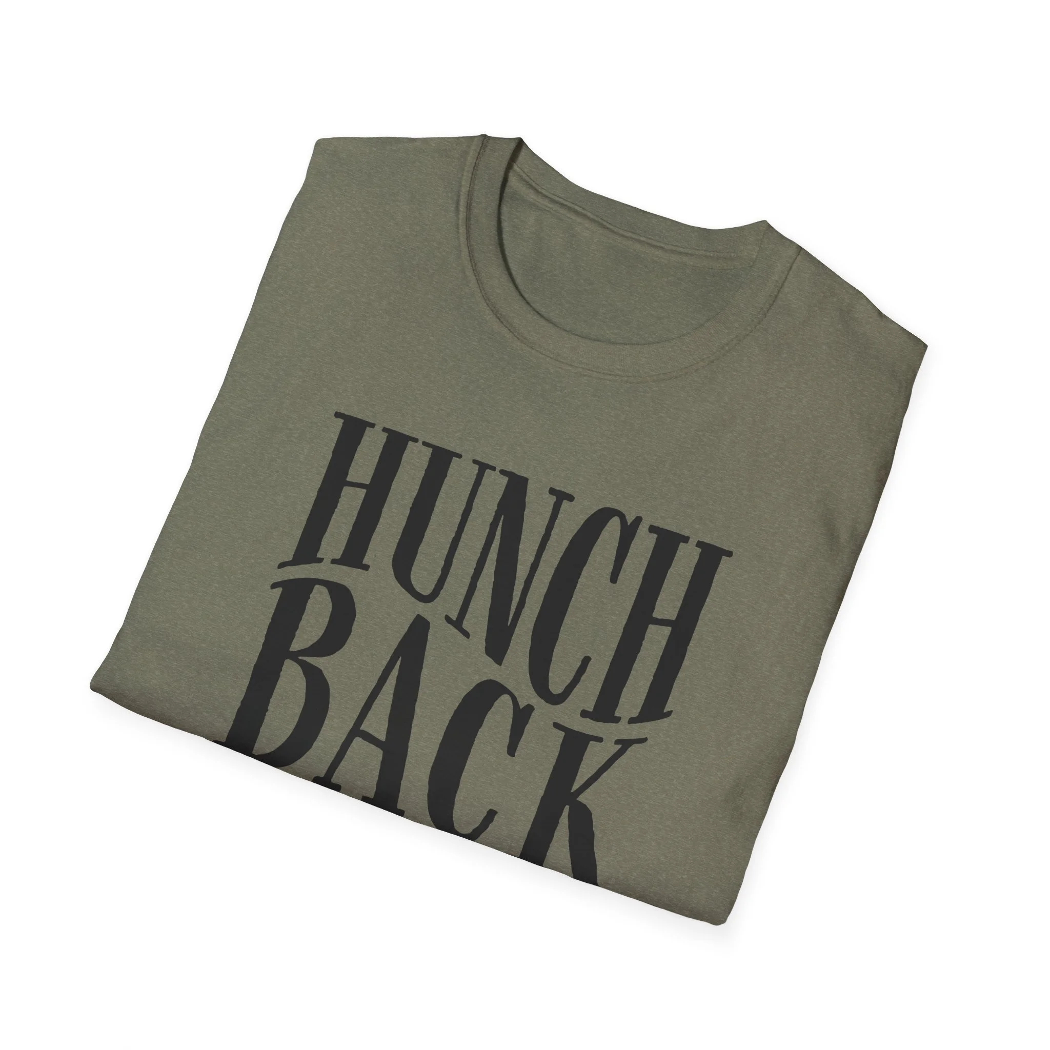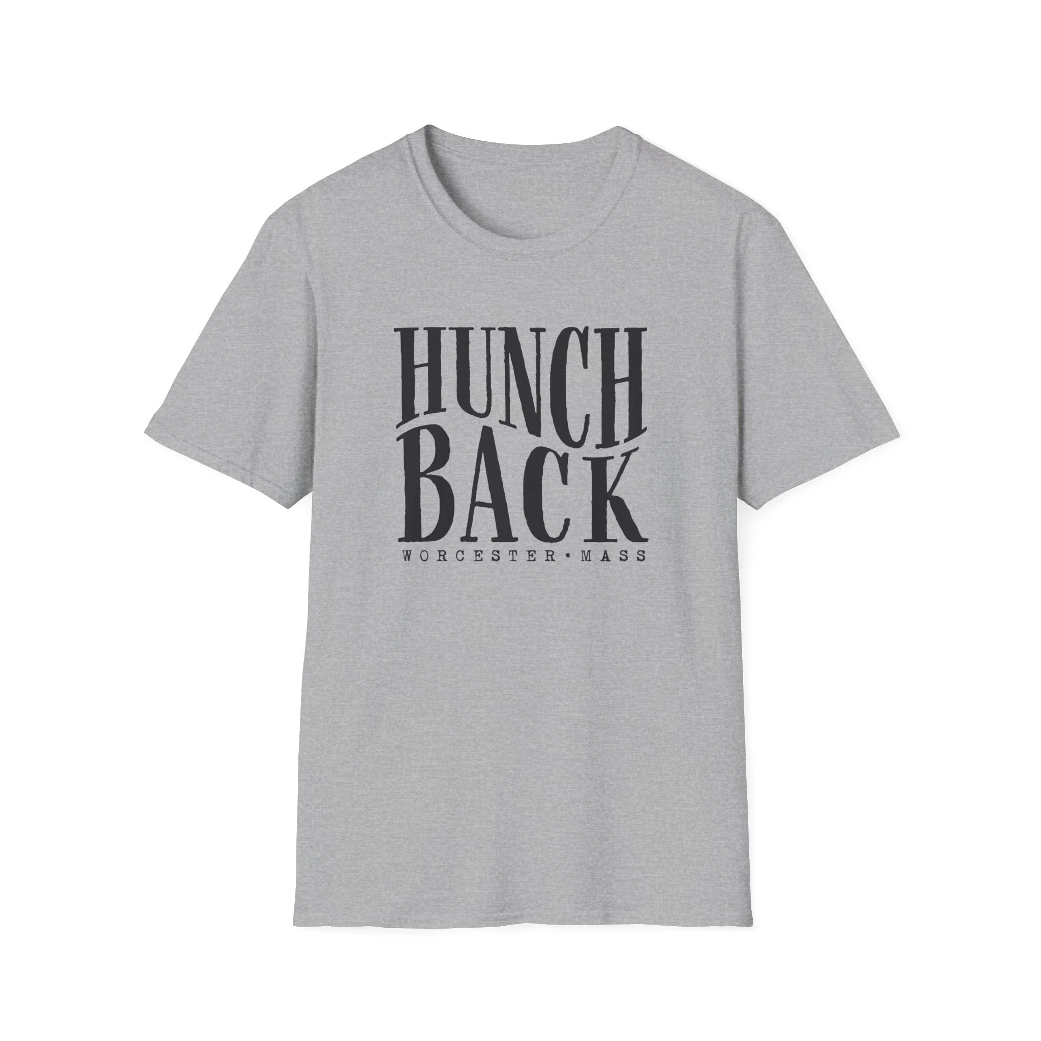 A typographic shirt built around the bend. The letters lean and curve with a subtle hunch to them, not broken, just shaped with intention. Big, groovy serif forms that feel hand tuned and slightly off in the best way. It carries that quiet, slightly defiant energy that lives at the core of Hunchback. Clean, bold type doing all the talking.